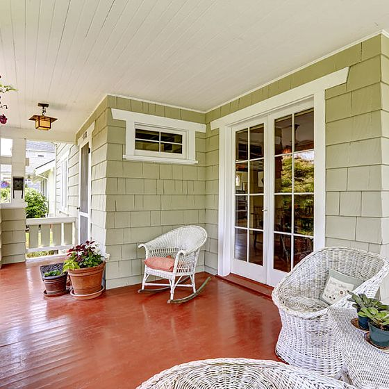 Отличное решение для покрытия пола — деревянные доски, паркет или ламинат под старину. Поверх них можно положить домотканые половики или шерстяные коврики. На полу в ванной комнате или кухне можно положить керамическую плитку крупных размеров с эффектом старины. Цвет для пола лучше выбирать в серой или песочной гамме оттенков. В дополнение к отделке лучше выбирать светлые двери с эффектом патинирования. Рамы на окнах лучше всего делать белыми, а сами проемы максимально большими.